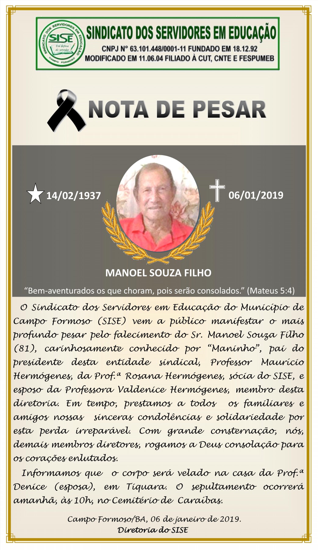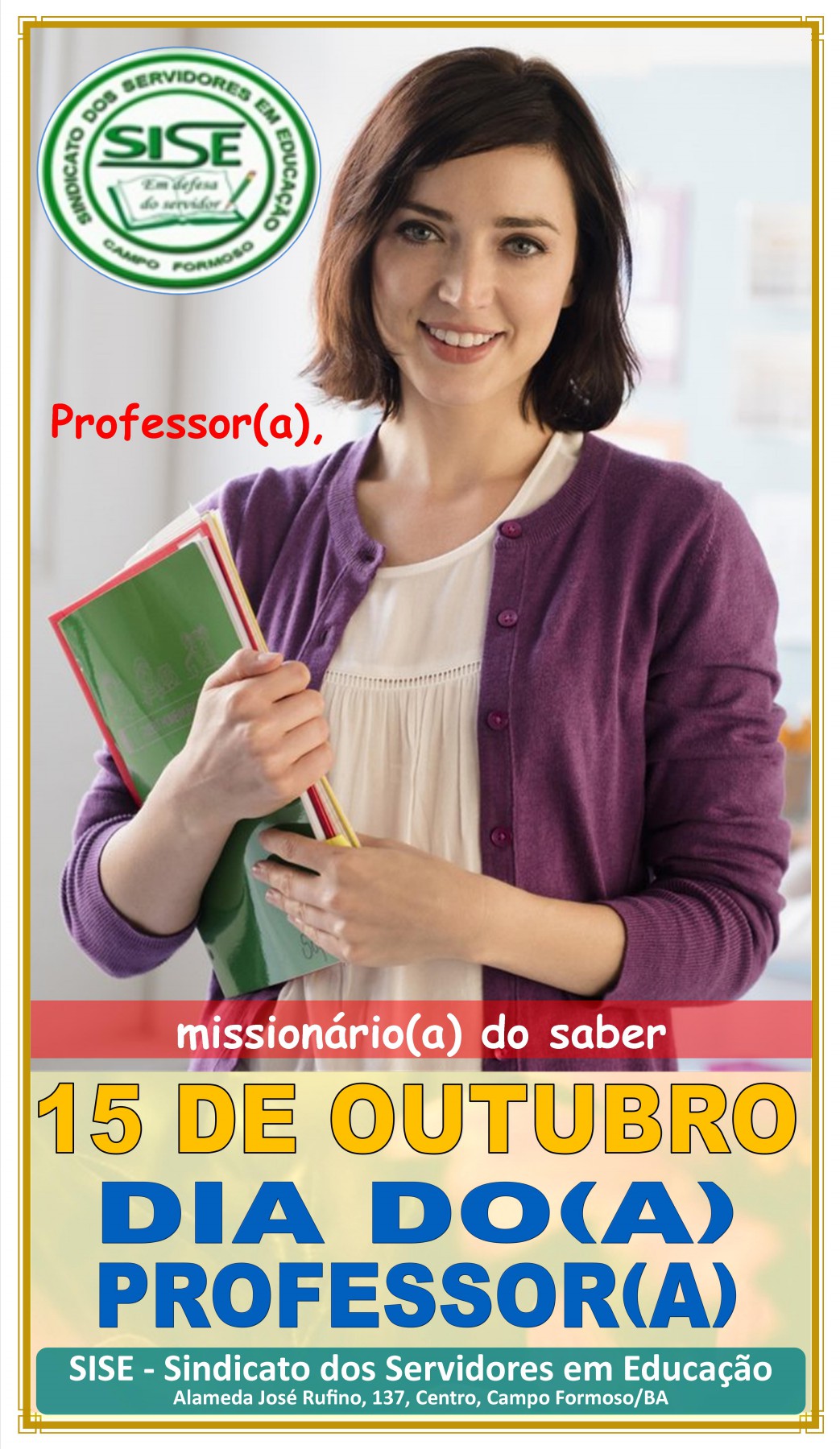 15 DE OUTUBRO: dia do(a) Professor(a) - SISE: SINDICATO DOS SERVIDORES EM EDUCAÇÃO DE CAMPO FORMOSO