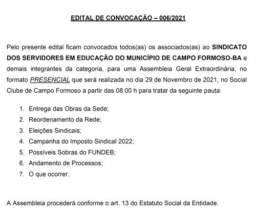 CONVOCAÇÃO PARA ASSEMBLEIA GERAL EXTRAORDINÁRIA